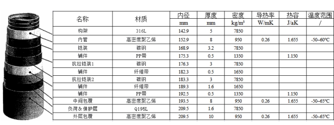 圖2.2 該撓性海管結(jié)構(gòu)及材質(zhì)