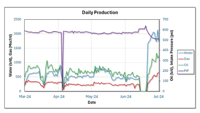 研究中,3口高含氣井配備IGP,6口井采用傳統(tǒng)ESP設(shè)備(如串聯(lián)氣體分離器和氣體處理泵)。由于IGP能更高效處理分離大量氣體并延長運行時間,3口井平均產(chǎn)液量較6口傳統(tǒng)井高出50%,且入口壓力更低。該系統(tǒng)因此延長了ESP泵設(shè)備壽命,提升可靠性,減少停機并降低運營成本。