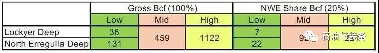 西北能源公司對(duì)Lockyer-North Erregulla Deep的Kingia和High Cliff Formation的預(yù)期天然氣資源(可采儲(chǔ)量)估計(jì)如下: