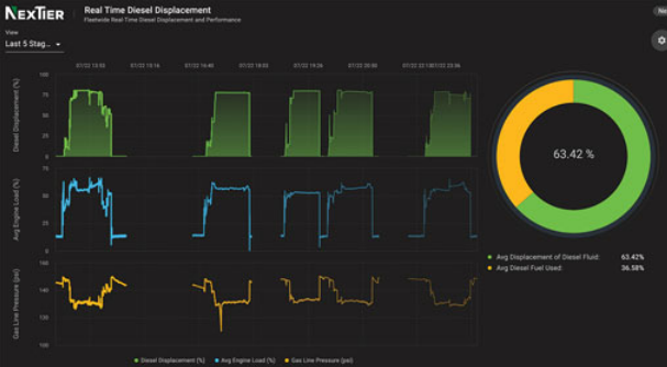 雙燃料壓裂隊(duì)能通過(guò)將天然氣納入燃料組合來(lái)取代大部分柴油消耗,這已被許多服務(wù)公司吹捧為一個(gè)輕松的勝利,也將自動(dòng)降低運(yùn)營(yíng)成本和提高ESG績(jī)效。然而,即使是評(píng)級(jí)最高的Tier 4雙燃料裝置也需要一個(gè)微妙的運(yùn)行參數(shù)的平衡,以提供最佳的柴油取代和減排、特定燃料混合物、泵速、刺激壓力和環(huán)境的績(jī)效標(biāo)準(zhǔn),提供由柴油取代的成本降低,以及降低排放。