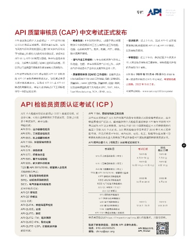 API 質(zhì)量審核員 (CAP) 中文考試正式發(fā)布