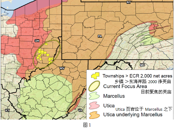 Eclipse Resources公司的鉆井計(jì)劃瞄準(zhǔn)了橫跨俄亥俄州(OH)、西弗吉尼亞州(WV)和賓夕法尼亞州(PA)整個(gè)的Utica和Marcellus頁巖地層,圖1展示了超長(zhǎng)水平段大位移水平井歷史案例的主要作業(yè)區(qū)域。該公司確定了一口超長(zhǎng)水平段的井,水平段長(zhǎng)度4572m或更長(zhǎng)。超長(zhǎng)水平段(a super lateral)這一術(shù)語已被行業(yè)內(nèi)的其他公司所采用,因?yàn)樗麄円苍谶M(jìn)行自己的大位移井鉆井會(huì)戰(zhàn)。在超長(zhǎng)水平段大位移水平井會(huì)戰(zhàn)中形成的經(jīng)過驗(yàn)證的鉆完井方法已被許多瞄準(zhǔn)美國(guó)非傳統(tǒng)油氣藏開發(fā)的石油公司所接受。這是一個(gè)明顯的跡象,表明其他地區(qū)采用這種超長(zhǎng)水平段的鉆完井方法可能會(huì)持續(xù)下去。
