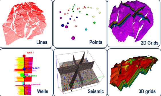 Petrel勘探開發(fā)一體化平臺目前涵蓋多種軟件的勘探、開發(fā)、生產(chǎn)、鉆井等140余種數(shù)據(jù)格式,可以直接對疊前地震數(shù)據(jù),疊后地震數(shù)據(jù),速度數(shù)據(jù),測井曲線,井斜,井上分層,地層構(gòu)造面,砂體厚度等厚圖,散點數(shù)據(jù),三維網(wǎng)格模型等數(shù)據(jù)進行直接加載。如果數(shù)據(jù)沒有確定的加載格式,一般也可以通過通用格式直接加載到軟件當中。
