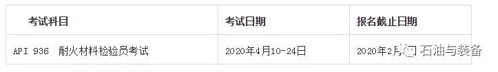 2020年第一次“API 936 耐火材料檢驗(yàn)員認(rèn)證”考試安排如下: