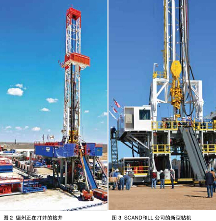 圖 3 展 示 了 SCANDRILL 公 司2015 年 1 月完成的一部新型鉆機(jī) ScanVision,該鉆機(jī)采用了一個(gè)雙燃料系統(tǒng)和一個(gè)行走系統(tǒng),在與 Anadarko公司所簽合同的推動(dòng)下建造了這部新型鉆機(jī)。在這個(gè)低迷時(shí)期,盡管各公司普遍存在裁員現(xiàn)象,但陸上鉆井行業(yè)依然保持著充足的鉆井隊(duì),與上世紀(jì) 80 年代所發(fā)生的情況相比,該行業(yè)當(dāng)前顯現(xiàn)出了更加積極的征兆,那就是接下來(lái)的增長(zhǎng)可能正是該行業(yè)興旺的拐點(diǎn),具備高素質(zhì)人員的鉆井隊(duì)對(duì)于一個(gè)公司的成功則是至關(guān)重要的。
