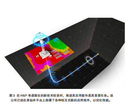 圖3 在H&P考慮潛在的新技術(shù)投資時(shí),推進(jìn)其應(yīng)用套件是其首要任務(wù)。該公司已經(jīng)在其鉆井平臺(tái)上部署了各種相互關(guān)聯(lián)的應(yīng)用程序,以優(yōu)化性能。