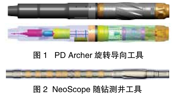 水平井開發(fā)提效的關(guān)鍵是選用可靠而高效的鉆井工具。斯倫貝謝第三代旋轉(zhuǎn)導(dǎo)向工具—PD Archer 是最新一代旋轉(zhuǎn)導(dǎo)向工具,兼具第一代和第二代旋轉(zhuǎn)導(dǎo)向工具的優(yōu)勢(shì),具有類似常規(guī)馬達(dá)的可調(diào)彎角(0.6° 、0.8° 、0.9° 、1° ),通過(guò)本體彎角與內(nèi)部導(dǎo)向偏移可產(chǎn)生理論上最高可達(dá) 15° /30m 的造斜率,能夠滿足軟硬不同地層以及夾層段的高造斜率要求,并能實(shí)現(xiàn)疏松地層的裸眼懸空側(cè)鉆作業(yè),是目前國(guó)際上最先進(jìn)的旋轉(zhuǎn)導(dǎo)向工具(見圖 1)。PD Archer 固有的全程旋轉(zhuǎn)設(shè)計(jì),大幅度降低了機(jī)械卡鉆和壓差卡鉆的風(fēng)險(xiǎn),良好的井壁質(zhì)量也有利于后期完井作業(yè)的實(shí)施。PDArcher 是一套混合式的旋轉(zhuǎn)導(dǎo)向系統(tǒng),其推力塊設(shè)置在工具本體內(nèi)部,不與地層接觸,系統(tǒng)更穩(wěn)定、更可靠。PDArcher 的定向原理是推力塊在鉆井液動(dòng)力的驅(qū)動(dòng)下推動(dòng)本體扶正器加大造斜率能力(推靠式),同時(shí)系統(tǒng)萬(wàn)向軸會(huì)按照指令驅(qū)動(dòng), 實(shí)現(xiàn)鉆頭方向的制定 (指向式)。PD Archer 獨(dú)特的混合式設(shè)計(jì)還降低了對(duì)井壁接觸的依賴,實(shí)現(xiàn)該系統(tǒng)在井眼任意位置進(jìn)行裸眼側(cè)鉆的目標(biāo),其全新的控制單元設(shè)計(jì)允許在鉆進(jìn)過(guò)程中使用更高密度的鉆井液,具有更大的排量范圍。