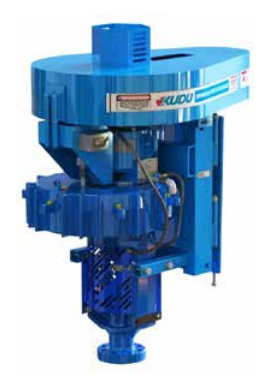 斯倫貝謝公司針對(duì)重油、輕油、天然氣脫水和熱力運(yùn)行中的使用的螺桿泵推出了KUDU液壓電動(dòng)驅(qū)動(dòng)頭。驅(qū)動(dòng)頭內(nèi)部安裝中空垂直軸,使用軸承箱或直角驅(qū)動(dòng)齒輪箱,驅(qū)動(dòng)頭最高工作轉(zhuǎn)速600rpm,工作溫度-40~55℃,工作載荷9.3~22.8噸,輸出扭矩1695~4805N·m,最大驅(qū)動(dòng)功率200馬力。