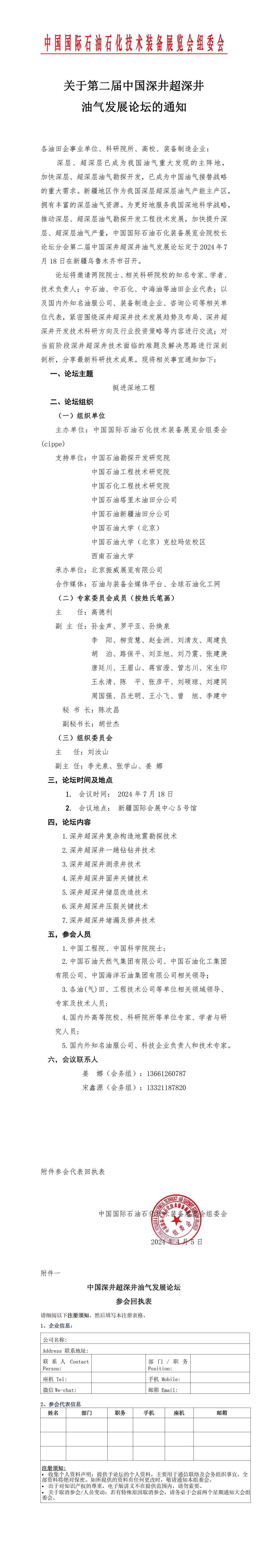 第二屆中國深井超深井油氣發(fā)展論壇將于2024年7月18日在新疆烏魯木齊市新疆國際會展中心5號館