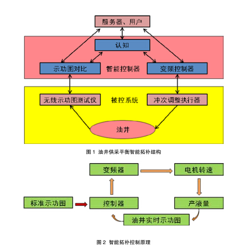 油井供采平衡是一個以自動化閉環(huán) 控制技術(shù)為基礎(chǔ),集物聯(lián)網(wǎng)遠程遙測、 變頻調(diào)速、示功圖診斷分析等技術(shù)的綜 合應(yīng)用,如圖 1 所示。供采平衡系統(tǒng)智能拓樸控制原理: 油井即是控制對象;無線示功圖測試 儀包括位移傳感器、載荷傳感器;示 功圖對比系統(tǒng)將測試的示功圖加以處 理;認知系統(tǒng)包括控制柜中的單片機或 PLC,用于接受和儲存知識、經(jīng)驗和數(shù) 據(jù),進行分析、推理,做出行動決策, 傳送至變頻控制系統(tǒng);服務(wù)器、用戶系 統(tǒng)既要建立人機之間的聯(lián)系,又要建立 圖 1 油井供采平衡智能拓樸結(jié)構(gòu) 圖 2 智能拓樸控制原理 系統(tǒng)各模塊之間的聯(lián)系;沖次調(diào)整執(zhí)行 器是整個系統(tǒng)的核心,根據(jù)實測示功圖 與標(biāo)準(zhǔn)示功圖對比,進行自動搜索、推 理決策、動作規(guī)劃,形成具體的控制 功能。依據(jù)智能拓樸控制原理,將 PID 閉環(huán)控制系統(tǒng)結(jié)合油井實際情況來完 成,如圖 2 所示。