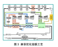 DMR 工 藝 為 雙 循環(huán)混合冷劑流程, 其適應(yīng)環(huán)境溫度和天 然氣組成波動的能力 獲得提高。在滿足一 定 前 提 基 礎(chǔ) 上, 極 寒 條 件 下 效 率 有 明 顯 優(yōu) 勢。 俄 羅 斯 薩 哈 林 2 項 目 采 用 該 工藝,于 2009 年投 產(chǎn)。該工藝相對能效 100%,最大裝置規(guī) 模約 500 萬噸 / 年, 主要特點是高能效、設(shè)備較少,適 用于大型裝置。由于用混合冷劑, 預(yù)冷冷劑丙烷用量相比 C3MR 大幅 減少,對丙烷儲存的需求降低,適 用于 FLNG 項目。其中,360 萬噸 / 年 Prelude FLNG 項目計劃 2017 年投產(chǎn)。