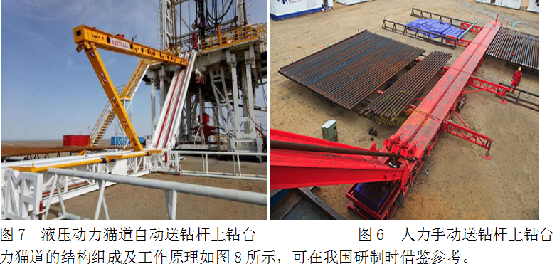 圖7 液壓動力貓道自動送鉆桿上鉆臺 圖6 人力手動送鉆桿上鉆臺