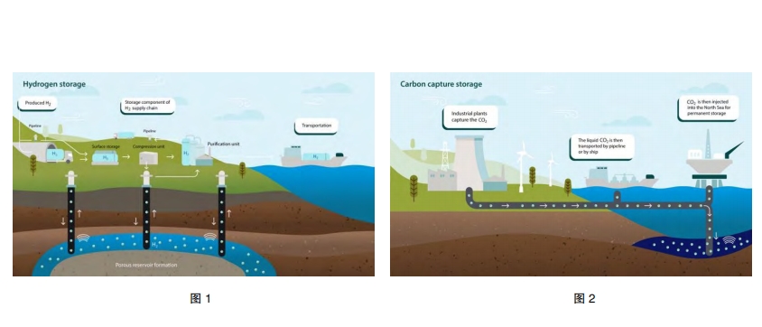 對使用清潔能源至關(guān)重要的 領(lǐng)域,CTD 能發(fā)揮真正的作用。 CTD 技術(shù)可用于鉆井儲氫見圖 1 (儲氫工藝)和碳捕獲儲存工藝 見圖 2,這兩者都是能源轉(zhuǎn)型的 關(guān)鍵要素。英國皇家學(xué)會去年發(fā) 布的一份報告指出,除非英國政 府立即啟動大規(guī)模儲氫設(shè)施的建 設(shè),否則到 2050 年將無法實現(xiàn) 具有法律約束力的凈零排放目標。 報告還指出,盡管具有巨量風(fēng)能 和太陽能貢獻的電力系統(tǒng)提供了 最低成本的電力,但擁有能夠儲 備和快速提取能源的大型儲能設(shè) 施則至關(guān)重要,這將有助于確保 能源安全和國家主權(quán)。 所 有 這 些 都 表 明, 氫 氣 儲 存和碳捕獲儲存的井對于未來幾 年的能源轉(zhuǎn)型至關(guān)重要。利用像 CTD 這樣的現(xiàn)有技術(shù),將使各個 組織能夠為氫氣和碳捕獲儲存做 好準備,這將為各國提供更清潔 的能源選擇,更重要的是,還能 為確保其能源主權(quán)提供一種重要 儲備。 地熱應(yīng)用。地熱能被吹捧為 一種最有利的能源。它是一種環(huán) 保資源,存在于許多地區(qū),不依 賴于天氣,與風(fēng)和海浪不同,而 且在許多方面,地熱甚至能勝過 一些更傳統(tǒng)的能源。無需燃燒化 石燃料即可從地球中提取地熱能, 這意味著地熱能可能是實現(xiàn)凈零 排放的關(guān)鍵組成部分。