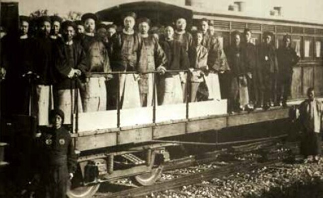 唐廷樞主持修建的中國第一條鐵路唐胥鐵路開通。唐廷樞前排左二,李鴻章左四