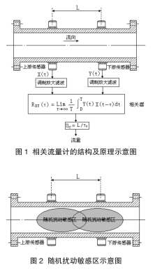 相 關 流 量 計 的 研 發(fā) 歷 史 可追 朔 到 上 世 紀 五 十 年 代。 英 國Butterfield 等人首先發(fā)現(xiàn)運動鋼帶表面微小凹凸所引起的機械隨機信號,并提出實現(xiàn)了鋼帶運動速度的相關測量系統(tǒng)。此后,相關測量理論得到很大發(fā)展,形成了很多相關測量技術。相關流量計測量原理相關流量計實際上是流速測量系統(tǒng),其結構及測量原理如圖 1 所示。
