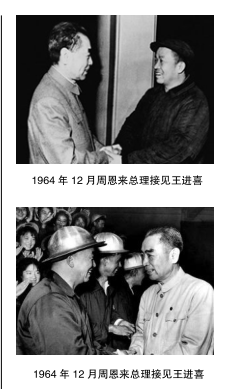 為了支持王進(jìn)喜回大慶抓生產(chǎn),周恩來總理在接見軍隊(duì)領(lǐng)導(dǎo)人和群眾代表是宣布:“王進(jìn)喜在大會(huì)戰(zhàn)中立了大功,歷史清楚。今后王進(jìn)喜的事情由大慶油田軍管會(huì)管,不準(zhǔn)再批斗!”