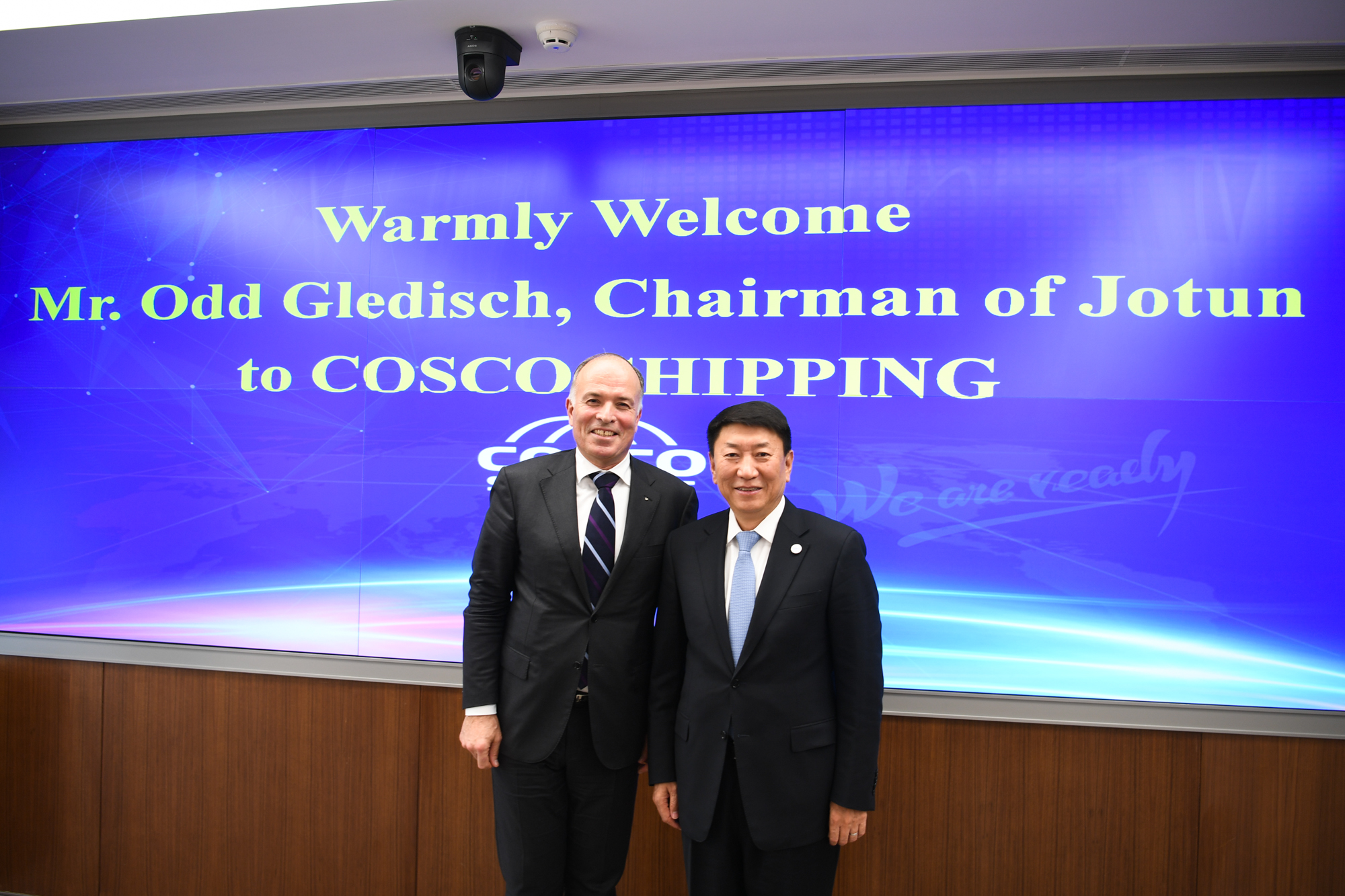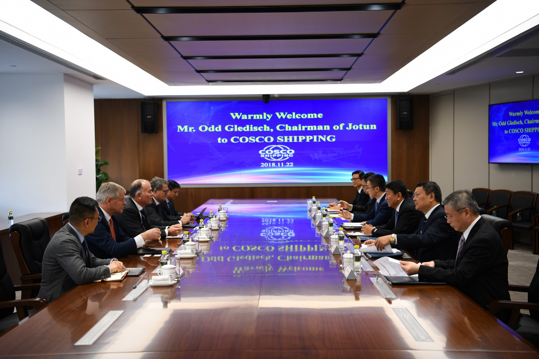 左起:楊杰(中遠(yuǎn)佐敦副總經(jīng)理)、Michael Shum(中遠(yuǎn)佐敦總經(jīng)理)、Geir Bøe(佐敦集團(tuán)執(zhí)行副總裁)、Morten Fon (佐敦集團(tuán)首席執(zhí)行官)、Odd Gleditsch d.y.(佐敦集團(tuán)董事長(zhǎng))、王宇航(中遠(yuǎn)海運(yùn)集團(tuán)副總經(jīng)理)、朱建輝(中遠(yuǎn)海運(yùn)(香港)有限公司總裁)、劉一凡(中遠(yuǎn)海運(yùn)集團(tuán)科信部總經(jīng)理)、劉剛(中遠(yuǎn)海運(yùn)(香港)有限公司副總裁)、鄭斌(中遠(yuǎn)海運(yùn)集團(tuán)戰(zhàn)略與企業(yè)管理本部高級(jí)經(jīng)理)