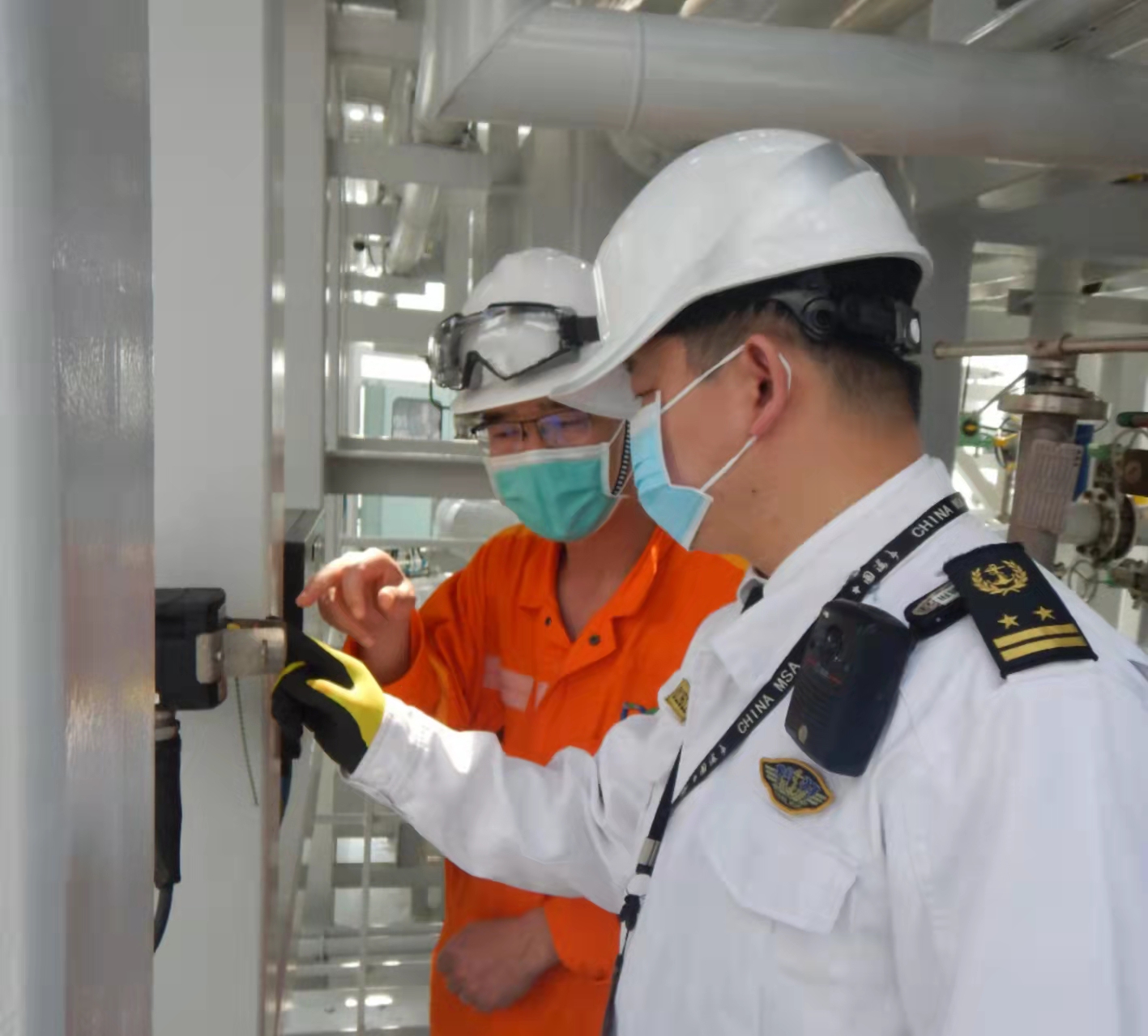 為保障載運LNG的“海港未來”輪在交通繁忙的洋山港內(nèi)安全航行,上海海事局通過船舶交通管理系統(tǒng)和船舶自動識別系統(tǒng)將“海港未來”輪船頭1海里、船尾0.5海里,左右兩側(cè)各150米劃設(shè)為“移動安全區(qū)”,航行期間其他船舶不得進入該區(qū)域。為保障加注作業(yè)安全進行,上海海事局一方面提前安排執(zhí)法人員對船員操作技能嚴格檢查確保裝卸安全,并對船、貨和作業(yè)申報審核,預(yù)防現(xiàn)場有明火、靜電作業(yè)的發(fā)生;另一方面,在加注船靠泊后,在兩船周圍劃定“安全作業(yè)警戒區(qū)”,通過遠程監(jiān)控和海事巡邏艇現(xiàn)場警戒防止過往船舶駛?cè)?;同時,組織協(xié)調(diào)消拖兩用拖輪等應(yīng)急力量現(xiàn)場值守,預(yù)防船舶失控、人員受傷等意外情況發(fā)生。