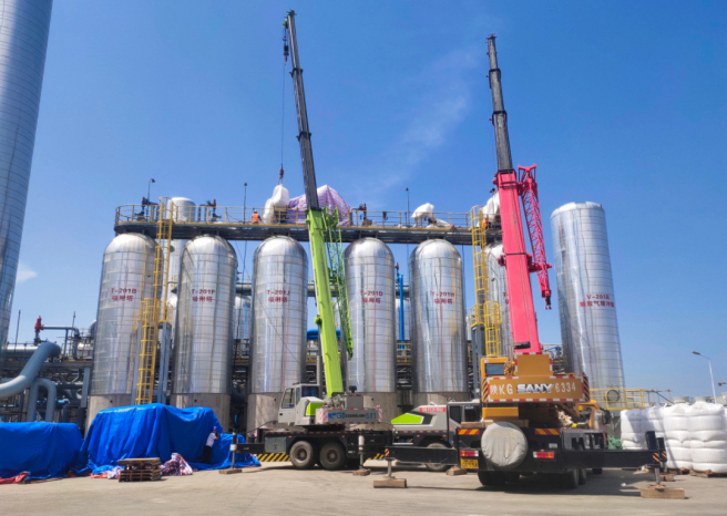 8月15日,由中國中化旗下企業(yè)西南院提供專有技術(shù)、全套設(shè)計(jì)及關(guān)鍵設(shè)備的陜煤集團(tuán)榆林化學(xué)公司“煤炭分質(zhì)利用制化工新材料示范項(xiàng)目”180萬噸/年乙二醇工程配套的特大型PSA制氫裝置基本完成吸附劑裝劑工作,具備開車條件,這也是目前全球在建最大的煤制氫PSA裝置。