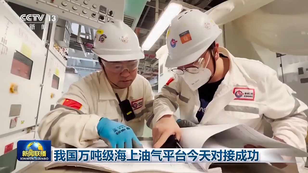 5月13日,在廣東珠江口盆地水深近百米的海域,重量超過15000噸的中海油恩平20-4海上鉆采平臺與海底導管架對接成功,創(chuàng)造了我國海上油氣平臺動力定位浮托安裝重量的新紀錄,填補了國內(nèi)技術(shù)空白。