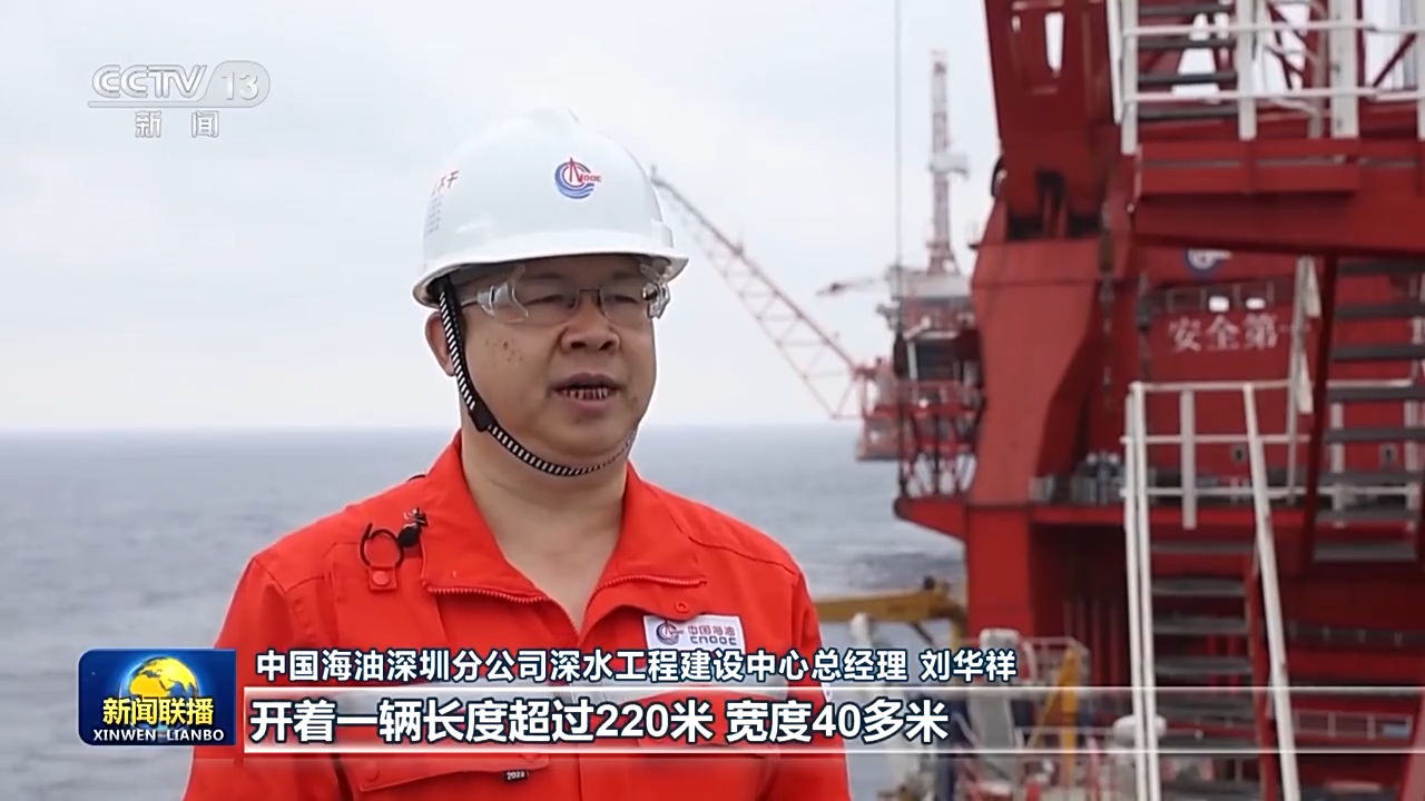 中國海油深圳分公司深水工程建設(shè)中心總經(jīng)理 劉華祥:作業(yè)過程相當于開著一個長度超過220米、寬度40多米,裝載10000輛小汽車的超級卡車,在風浪流不斷變化影響的海面上進行倒車入庫,且兩側(cè)邊緣誤差不能超過10厘米,對設(shè)計計算精確性、動力定位系統(tǒng)的可靠性、操作人員的技術(shù)水平均提出極大挑戰(zhàn)。