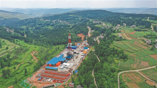 我國(guó)首口以最古老沉積地層南華系為完鉆層位的萬(wàn)米科探井——中國(guó)石油深地川科1井在四川劍閣深山鳴笛開(kāi)鉆。圖為深地川科1井全景。